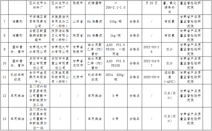 甘肅省市場監(jiān)管局公布26批次不合格產(chǎn)品抽檢情況