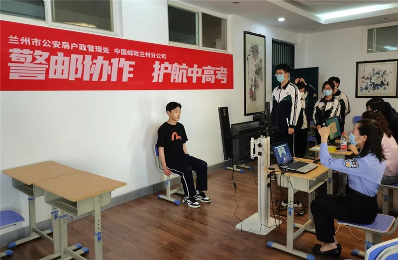 為了最大限度節(jié)省莘莘學(xué)子們緊張的復(fù)習(xí)時(shí)間,5月19日至20日,蘭州市公安局戶(hù)政管理處聯(lián)合中國(guó)郵政蘭州分公司,攜手七里河分局、七里河分局小西湖派出所及城關(guān)分局酒泉路派出所,市、區(qū)、派出所三級(jí)聯(lián)動(dòng),一起走進(jìn)蘭州西北中學(xué)與蘭州一中,將辦證窗口前移至校園,通過(guò)現(xiàn)場(chǎng)拍攝照片、離線(xiàn)采集指紋等方法,為即將參加高考的學(xué)生們提供“足不出校”即可辦理居民身份證的便捷服務(wù),將“服務(wù)群眾零距離”的服務(wù)承諾落到實(shí)處。