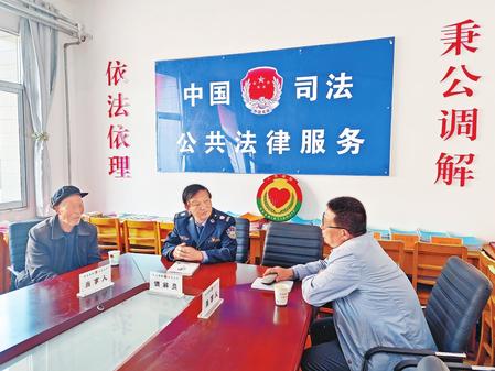 全國模范人民調(diào)解員、和政縣司法局三合司法所所長張仲勝傾心調(diào)解矛盾糾紛(4月20日拍攝)。 新甘肅·甘肅法制報(bào)記者陳孝志攝