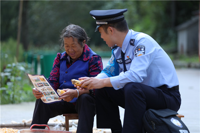回應(yīng)人民期待,反映人民心聲。黨的二十大報告中,“人民”是關(guān)鍵詞、高頻詞。“從群眾的角度出發(fā),以人民為中心,‘警務(wù)背包’走村進鎮(zhèn),背出去的是警務(wù),背回來的是群眾的期盼和警民情。”駐村民警羅清春說道。