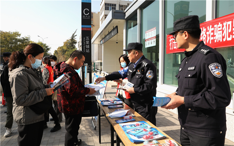 宣傳活動(dòng)中,軌道派出所所長充分利用軌道交通客流量大的陣地優(yōu)勢,與屬地公安派出所所長、街道社區(qū)主任、軌道站點(diǎn)站長“四長”聯(lián)動(dòng),夯實(shí)地上地下一體化,在地鐵車廂內(nèi)、站臺(tái)、車站出入口等人員密集區(qū)開展防范電信網(wǎng)絡(luò)詐騙常識(shí)宣傳,講解身邊典型案例,發(fā)放反詐宣傳資料及宣傳品,重點(diǎn)介紹近期多發(fā)的“蟹卡”類詐騙、“蹭熱點(diǎn)”類詐騙,指導(dǎo)群眾正確預(yù)防電信詐騙,講授受騙后應(yīng)當(dāng)及時(shí)撥打“96110”反詐專線等補(bǔ)救措施。