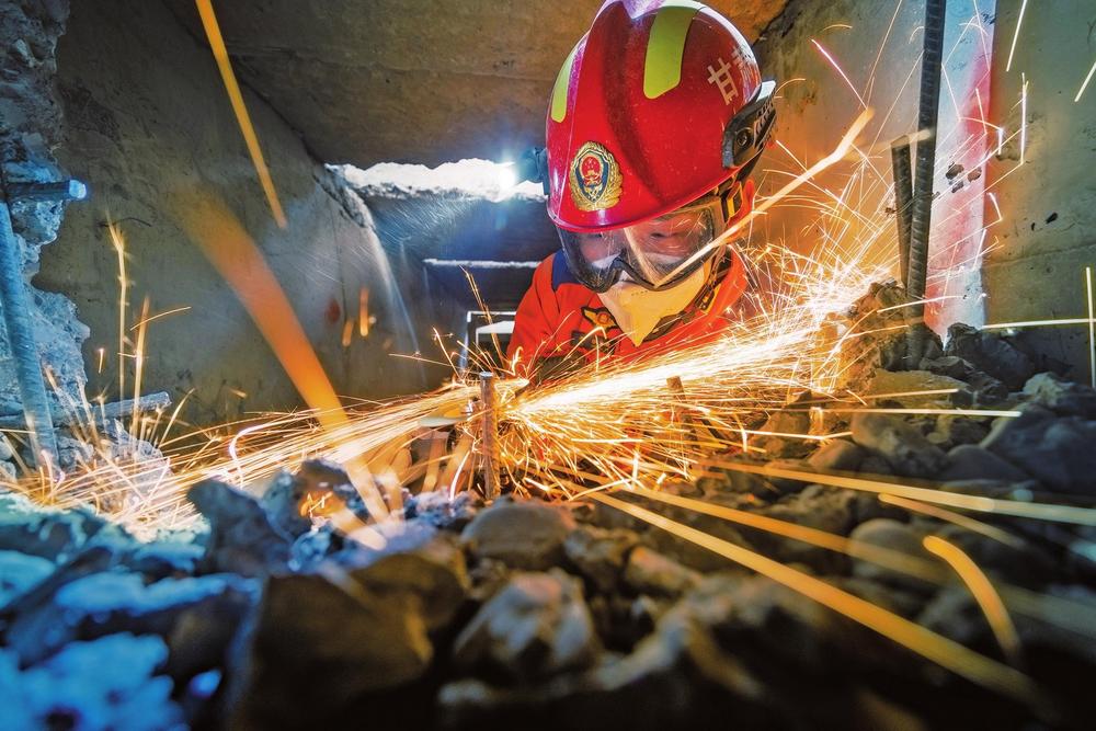 眼看就要取得勝利,余震突然來襲,救援現(xiàn)場(chǎng)可能出現(xiàn)二次坍塌的風(fēng)險(xiǎn)。救援人員迅速組織人員撤離,在確?,F(xiàn)場(chǎng)環(huán)境安全后對(duì)風(fēng)險(xiǎn)點(diǎn)進(jìn)行支撐加固處理,再次展開救援。