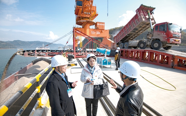 重慶市萬州區(qū)紀(jì)委監(jiān)委圍繞推動成渝地區(qū)雙城經(jīng)濟(jì)圈建設(shè)跟進(jìn)監(jiān)督,保障重點工程順利推進(jìn)、廉潔高效。圖為萬州區(qū)紀(jì)檢監(jiān)察干部深入重點水運項目新田港現(xiàn)場了解情況。 攝影/冉孟軍(萬州區(qū)紀(jì)委監(jiān)委干部)