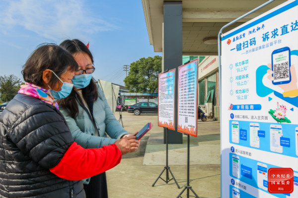 江蘇省張家港市紀(jì)委監(jiān)委聚焦做實(shí)監(jiān)督,創(chuàng)新信息化監(jiān)督平臺建設(shè),用“碼上監(jiān)督”推動監(jiān)督下沉、落地見效,維護(hù)群眾利益。圖為該市紀(jì)檢監(jiān)察干部在南豐鎮(zhèn)永聯(lián)村指導(dǎo)群眾掃碼使用基層廉勤監(jiān)督平臺。(江蘇省張家港市紀(jì)委監(jiān)委 供羅燕 攝)