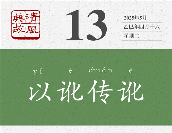 《說文解字》:“訛,偽言也。”引申為虛假,錯誤。“訛以傳訛”的意思是,本來就是錯誤的,又錯誤地加以傳播。后人則以“以訛傳訛”為典,指把不正確的東西錯誤地傳出去,結(jié)果越傳越錯,錯上加錯。魯迅雜文《太平歌訣》:“市民以訛傳訛,自相驚擾,因而家家幼童,左肩各懸紅布一方,上書歌訣四句,借避危險。”