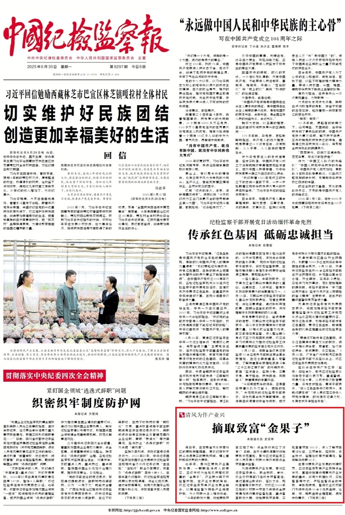 《中國紀檢監(jiān)察報》2025年6月30日 第1版