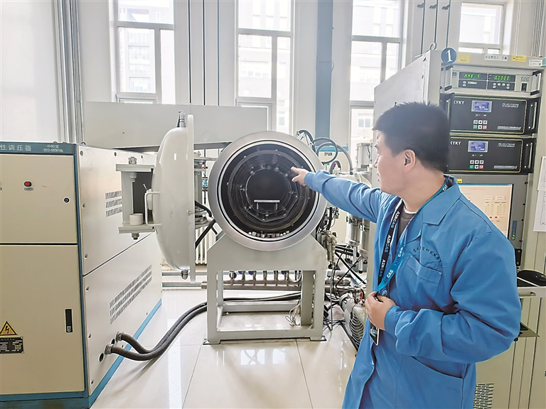 中國科學(xué)院空天信息創(chuàng)新研究院行波管工藝技術(shù)負(fù)責(zé)人劉泳良介紹高溫真空釬焊爐的用途。左翰嫡 攝