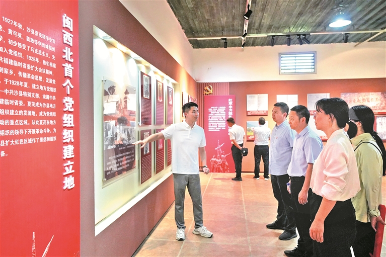 近年來,福建省泰寧縣紀(jì)委監(jiān)委運(yùn)用紅色資源,通過參觀學(xué)習(xí)紅色場館、開展紅色故事宣講等方式,引導(dǎo)紀(jì)檢監(jiān)察干部賡續(xù)紅色血脈,傳承光榮傳統(tǒng)和優(yōu)良作風(fēng)。圖為近日,該縣紀(jì)檢監(jiān)察干部到三明市沙縣區(qū)夏茂鎮(zhèn)紅色展廳開展學(xué)習(xí)。許林煒 攝