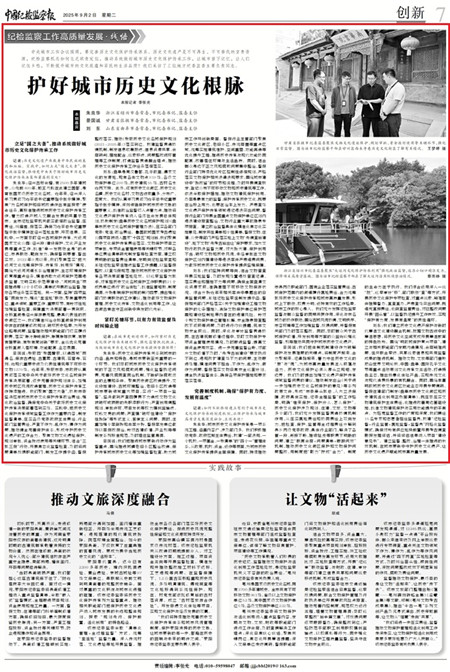 景國誠:我們把體制機(jī)制建設(shè)作為破解保護(hù)與發(fā)展難題的關(guān)鍵點(diǎn),將制度嚴(yán)起來、合力聚起來、紀(jì)律挺起來,著力守住歷史文化的“根”與“魂”,為城市高質(zhì)量發(fā)展注入底蘊(yùn)與活力。歷史文化保護(hù)必須從源頭立規(guī)矩、定邊界。我們及時(shí)提出加強(qiáng)文化遺產(chǎn)保護(hù)傳承領(lǐng)域監(jiān)督問責(zé)的建議,推動(dòng)制定出臺(tái)《關(guān)于進(jìn)一步加強(qiáng)歷史文化名城保護(hù)的意見》等系列政策文件,形成“市委牽頭抓總、人大立法保障、政府具體實(shí)施、紀(jì)委全程監(jiān)督”的工作格局,明確“誰來保護(hù)、保護(hù)什么、怎么保護(hù)”。歷史文化保護(hù)涉及規(guī)劃、住建、文旅、文物等多個(gè)部門,我們充分發(fā)揮監(jiān)督貫通協(xié)調(diào)機(jī)制作用,從壓實(shí)屬地責(zé)任和協(xié)同責(zé)任上雙向發(fā)力,把檢查、保護(hù)、監(jiān)管等全過程責(zé)任分解到縣鄉(xiāng)兩級(jí)黨委政府、具體行業(yè)部門,解決了各管一段、銜接不暢、推諉扯皮等職責(zé)不明晰的問題,建立“聯(lián)席會(huì)商+問題清單+跟蹤問效”機(jī)制,推動(dòng)歷史文化街區(qū)保護(hù)和文物保護(hù)問題整改,用制度把“散力”擰成“合力”。制度的生命力在于執(zhí)行。我們綜合運(yùn)用深入一線“挖”、巡察審計(jì)“移”、部門聯(lián)動(dòng)“查”等方式,開展歷史文化保護(hù)專項(xiàng)檢查,對(duì)重點(diǎn)線索、疑難案件掛牌督辦、直查直辦,嚴(yán)肅查處突出問題,既追究直接責(zé)任,也倒查監(jiān)管責(zé)任,對(duì)已整改問題開展“回頭看”,以監(jiān)督執(zhí)紀(jì)提升工作質(zhì)效,實(shí)現(xiàn)“保護(hù)有力度、發(fā)展有溫度”的良性循環(huán)。