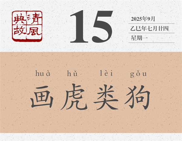 龍伯高、杜季良為當(dāng)時(shí)名士,伯高老實(shí)敦厚,馬援喻之以鵠;季良豪爽仗義,馬援喻之以虎。“刻鵠不成尚類鶩”的意思是,畫天鵝不成但還有些像鴨子,雖不逼真,但還相似;“畫虎不成反類狗”的意思是,畫老虎不成卻畫成了一只狗,其形其神,差之遠(yuǎn)矣。人們即以“畫虎類狗”為典,比喻刻意模仿,弄巧成拙。皮日休詩《宏詞下第感恩獻(xiàn)兵部侍郎》:“畫虎已成翻類狗,登龍才變即為魚。”