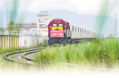 8月23日,前往老撾萬象的國際貨物列車駛出中老鐵路中國玉溪研和站。當(dāng)日,中老鐵路國際貨物列車(玉溪—萬象)實現(xiàn)雙向開行。新華社記者 陳欣波 攝