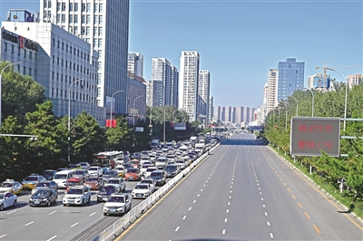 圖③:車(chē)輛在沈陽(yáng)崇山中路停車(chē)?guó)Q笛。 新華社記者 周華 攝