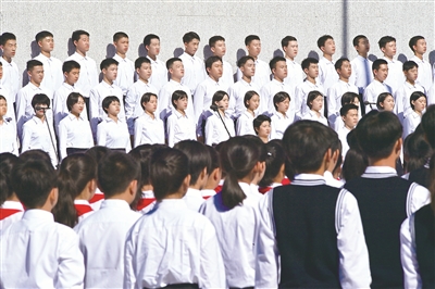 “白山黑水齊出動(dòng),復(fù)興我中華……”殘歷碑廣場(chǎng)上,80名青年學(xué)生鏗鏘有力的朗誦聲,讓《送戰(zhàn)友編歌壯行保國(guó)家》《黑水白山•調(diào)寄滿(mǎn)江紅》《濱江抒懷》三首分別由東北抗聯(lián)英雄楊靖宇、趙尚志、趙一曼當(dāng)年寫(xiě)下的詩(shī)詞響徹在沈陽(yáng)“九•一八”歷史博物館上空。