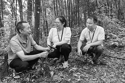 福建省龍巖市紀委監(jiān)委將深化集體林權(quán)制度改革作為政治監(jiān)督重要內(nèi)容,不斷夯實高質(zhì)量發(fā)展底色。圖為該市武平縣紀檢監(jiān)察干部在萬安鎮(zhèn)捷文村林下靈芝種植基地了解有關情況。曹建橋 攝