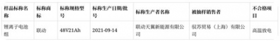 2021年上海市電動(dòng)自行車鋰離子電池產(chǎn)品質(zhì)量監(jiān)督抽查不合格產(chǎn)品