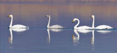 大天鵝首次光臨蘭州。 張元 攝
