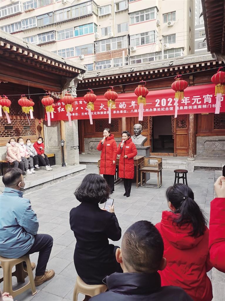 當天的活動在蘭州八辦講解員激情昂揚的紅色情景劇《紅色驛站》中拉開帷幕,該劇深情回顧了抗戰(zhàn)初期發(fā)生在蘭州八辦的革命往事;情景劇結(jié)束后是我省曲藝表演藝術家王偉表演的相聲貫口,他風趣幽默、出口成章的演出讓在座的觀眾掌聲如潮;接下來,酒泉路街道歌緣唱響藝術團先后表演了精彩的歌舞節(jié)目。來自南關民族風味一條街的少數(shù)民族市民表演了充滿民族特色的舞蹈《歡樂的麥西來普》,并在現(xiàn)場為大家奉上風味濃郁、香甜可口的手工元宵,讓現(xiàn)場濃郁的節(jié)日氛圍達到高潮。