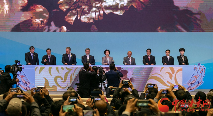 首屆絲綢之路(敦煌)國際文化博覽會于2016年9月20日在敦煌市隆重舉行。國家主席習近平發(fā)來賀信,對敦煌文博會的召開致以熱烈的祝賀,向出席敦煌文博會的各國嘉賓和朋友表示誠摯的歡迎。時任中共中央政治局委員、國務院副總理劉延東出席開幕式宣讀習近平賀信并發(fā)表主旨演講。來自85個國家、5個國際和地區(qū)組織的95個代表團應邀出席,66個外國機構、434位國外賓客參加論壇、文化年展和文藝演出,國內16個省區(qū)市和港澳臺地區(qū)23個代表團共計1700多位中外嘉賓參會。6位外國政要、前政要出席開幕式并發(fā)表演講,23國文化部長和代表出席了圓桌會議,討論并通過了《敦煌宣言》。