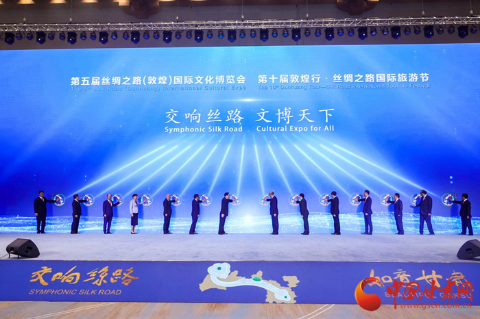 第五屆絲綢之路(敦煌)國際文化博覽會和第十屆敦煌行·絲綢之路國際旅游節(jié)于2021年9月24日—26日在甘肅省敦煌市隆重舉行。中共中央政治局委員、中央書記處書記、中宣部部長黃坤明以視頻形式出席開幕式暨高峰會議并發(fā)表主旨演講,300多名國外、國際組織及國內省區(qū)市代表現場參加會議,400多萬網友線上參加有關活動。大會以習近平新時代中國特色社會主義思想為指導,認真落實“一帶一路”倡議,以線上線下相結合的方式舉辦一系列主體活動,有力促進絲路沿線各國文化交流與旅游合作,有效增進文化認同與情感共鳴,是一次展示中國文化自信、共商“一帶一路”建設、推動文旅融合發(fā)展的盛會,是一次提升甘肅對外影響力、展示開放新形象、凝聚發(fā)展新動力的盛會,得到了國際社會的廣泛贊譽和一致好評。