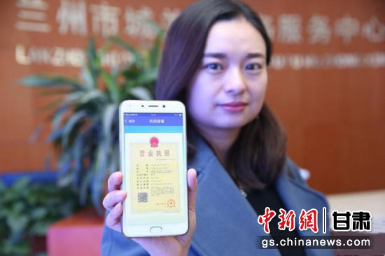 圖為蘭州一家公司代表展示申領(lǐng)的電子營(yíng)業(yè)執(zhí)照。(資料圖) 史靜靜 攝
