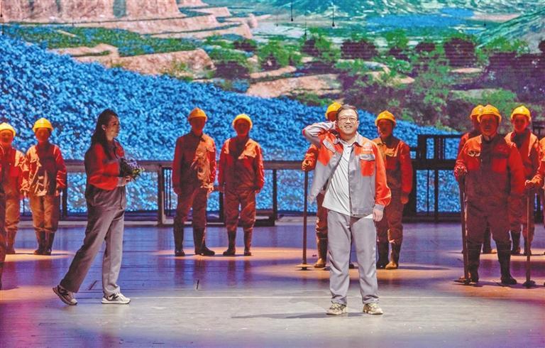 在兩個(gè)小時(shí)的演出中,全體演職人員以群像式表演,將蘭渝鐵路建設(shè)者的科技創(chuàng)新精神、愚公移山精神、大國工匠精神完美展現(xiàn)在舞臺(tái)上。“那座山,不太高,胡麻花開山上頭,山根根,開洞洞,火車鉆進(jìn)山里頭……”伴隨著悠揚(yáng)的謝幕音樂,劇場(chǎng)內(nèi)爆發(fā)出了經(jīng)久不息的熱烈掌聲。