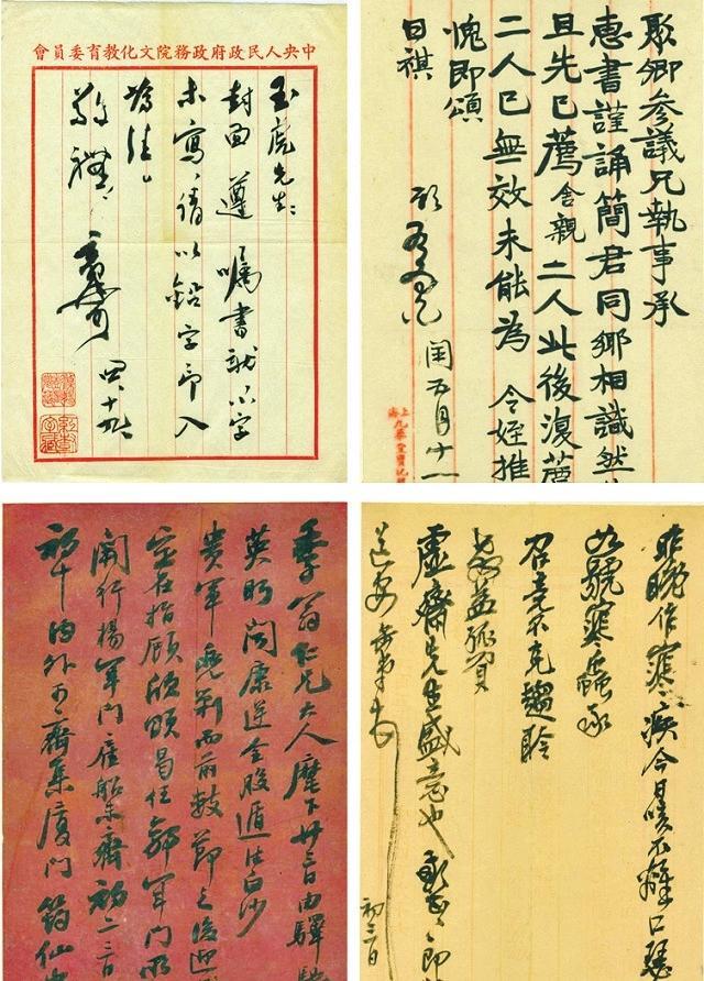 本次展覽共展出中國(guó)近現(xiàn)代50多位名人的信札墨跡共計(jì)100多通。信札作者匯聚了清朝末期到民國(guó)初期政治、經(jīng)濟(jì)、軍事、宗教、文學(xué)藝術(shù)等領(lǐng)域著名人物,如吳昌碩、沈鈞儒、弘一法師、康有為、傅雷、郭沫若、吳湖帆、老舍、茅盾等,每一個(gè)作者都曾在中國(guó)近現(xiàn)代史上留下過(guò)濃墨重彩的一筆。