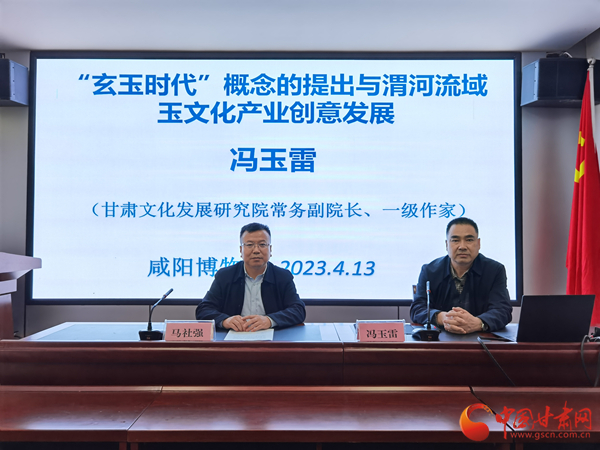 中國甘肅網4月13日訊 為進一步促進博物館學術研究交流創(chuàng)新,激發(fā)博物館發(fā)展活力,持續(xù)推動博物館高質量發(fā)展,陜西咸陽博物院于4月13日下午3點舉辦第二期“咸博大講堂”專題講座,甘肅文化發(fā)展研究院常務副院長、一級作家馮玉雷作了題為《“玄玉時代”概念的提出與渭河流域玉文化產業(yè)創(chuàng)意發(fā)展》的學術報告。咸陽博物院院長馬社強主持講座。