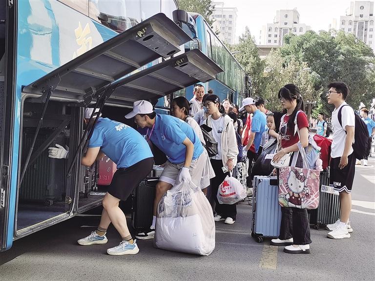 在城關(guān)校區(qū)校車接駁點(diǎn),金師傅一刻不停地忙碌著。在他和同事們的通力協(xié)作下,一輛輛大巴有序地停靠到接駁點(diǎn),大家手腳麻利地與志愿者配合,將新生們的行李物品裝車后,引導(dǎo)大家上車,然后將新生和家長(zhǎng)送往榆中校區(qū)。“我們后勤保障部這次總共組織了大小車輛71輛,按照學(xué)校部署在各迎新點(diǎn)負(fù)責(zé)迎接和運(yùn)輸新生家長(zhǎng)。為了保障路面暢通,我們與交管部門(mén)也都事先進(jìn)行了溝通,確保新生安全、快速入校報(bào)到。”金師傅說(shuō)。