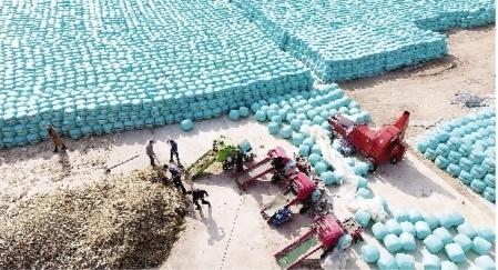 廣袤大地鋪金繡綠。在廣河縣齊家鎮(zhèn)糧改飼種植基地,一臺臺大型收割機正在田間忙碌穿梭,玉米連同秸稈被農機收割,一塊塊農田耕耘平整,構成一幅秋收風景圖;