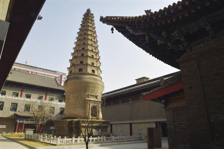 多子塔為八角十三層實(shí)心磚塔,1987年維修時(shí),在塔剎內(nèi)及頂層塔身中起出一批珍貴文物。白衣菩薩殿,因殿內(nèi)原掛有白衣大士觀世音菩薩畫(huà)像而得名,屬于白衣寺早期建筑。