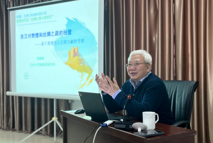 2024年3月21日下午,蘭州大學(xué)鄭炳林教授應(yīng)邀在“絲綢之路與敦煌學(xué)”系列公益學(xué)術(shù)講座主講《兩漢對(duì)敦煌和絲綢之路的經(jīng)營》。講座由敦煌研究院敦煌文獻(xiàn)研究所主辦,趙曉星研究員主持,在蘭州分院舉行。我院專家學(xué)者,蘭州大學(xué)、西北師范大學(xué)、西北民族大學(xué)師生,及敦煌學(xué)愛好者50余人現(xiàn)場(chǎng)參加了此次學(xué)術(shù)活動(dòng)。