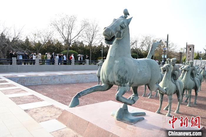 2024年4月17日,游客在中國旅游標志“馬踏飛燕”出土地雷臺漢墓內參觀。九美旦增 攝