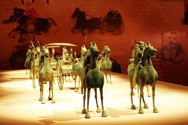 武威雷臺(tái)漢墓出土的銅車馬儀仗。