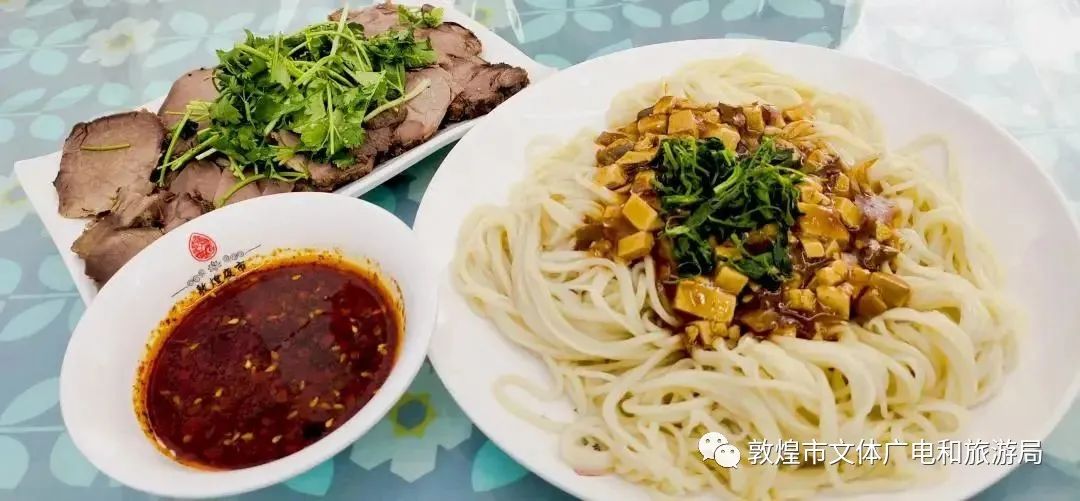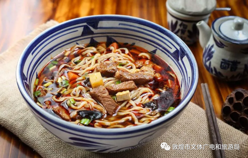 臊子面,是敦煌美食中的經(jīng)典代表。細(xì)長(zhǎng)的面條搭配上濃郁的臊子湯,口感醇厚,香氣撲鼻。