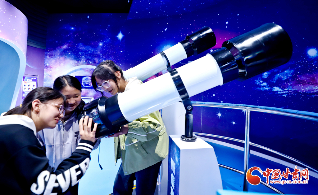 10月2日,在甘肅省張掖科技館內(nèi),科普志愿者引領(lǐng)家長(zhǎng)和孩子們,了解宇宙星系知識(shí),體驗(yàn)電磁秋千、太空漫步VR,進(jìn)行有趣的虹吸現(xiàn)象、光線投影變化等實(shí)驗(yàn),近距離感受科技發(fā)展變化的魅力,快快樂(lè)樂(lè)歡度國(guó)慶假期。