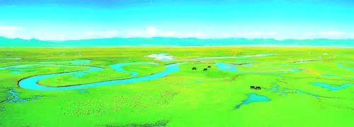 在這里,每看一眼都是風景,每行一步都有故事,每一片土地都是一幅絕美的圖畫。黃河從云煙蒼茫的雪域高原流出,冰雪化為淙淙流水,沿途九曲回腸,匯納百川,留下一個個碧波蕩漾的湖泊,懷抱起一片片豐腴壯美的草原,孕育著一座座城鎮(zhèn)和村落,養(yǎng)育了各族兒女,播撒著希望,醞釀著生機……