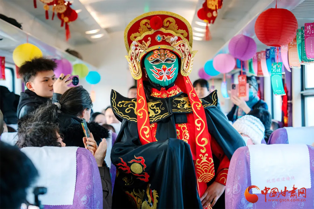 刺繡、陶藝、剪紙、做燈籠、吃湯圓……車站工作人員還邀請非物質文化遺產(chǎn)傳承人用傳統(tǒng)的精妙技藝呈現(xiàn)熱鬧非凡的元宵。喜慶的龍形燈籠、五顏六色的字謎、鮮艷的中國結裝飾品掛滿車廂;舞蹈串燒、歌曲演唱、川劇變臉,處處洋溢著濃濃的節(jié)日氛圍,一路歡歌、掌聲不斷,讓旅途滿載文化馨香。