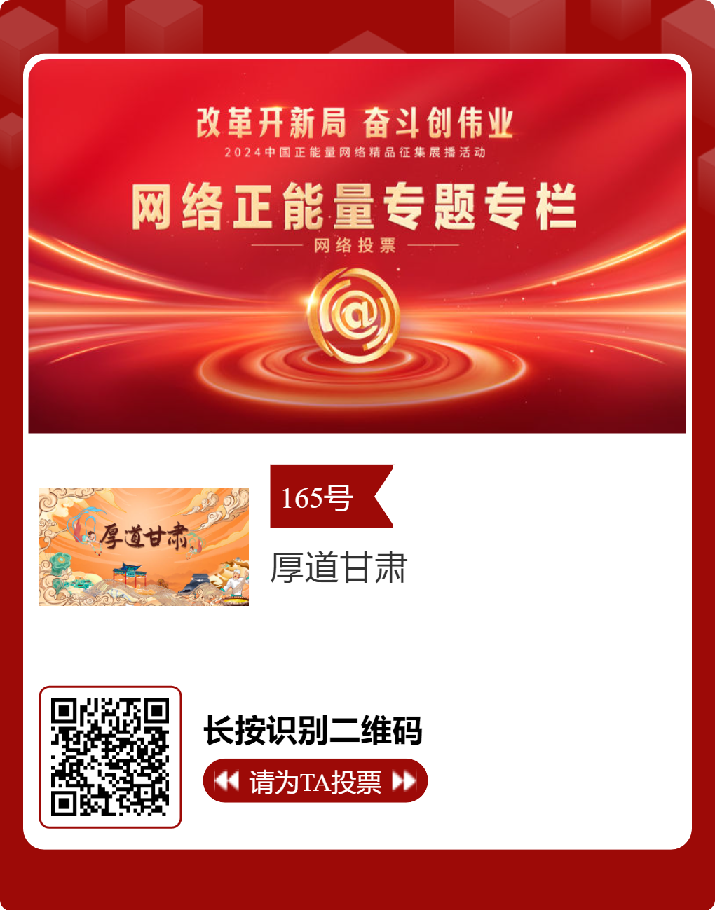 經(jīng)過初選,由甘肅省委網(wǎng)信辦和白銀市委網(wǎng)信辦選送的3件作品脫穎而出,進(jìn)入終選。在此,誠邀每個(gè)充滿正能量的你,為優(yōu)秀作品投票點(diǎn)贊,為甘肅正能量發(fā)聲。