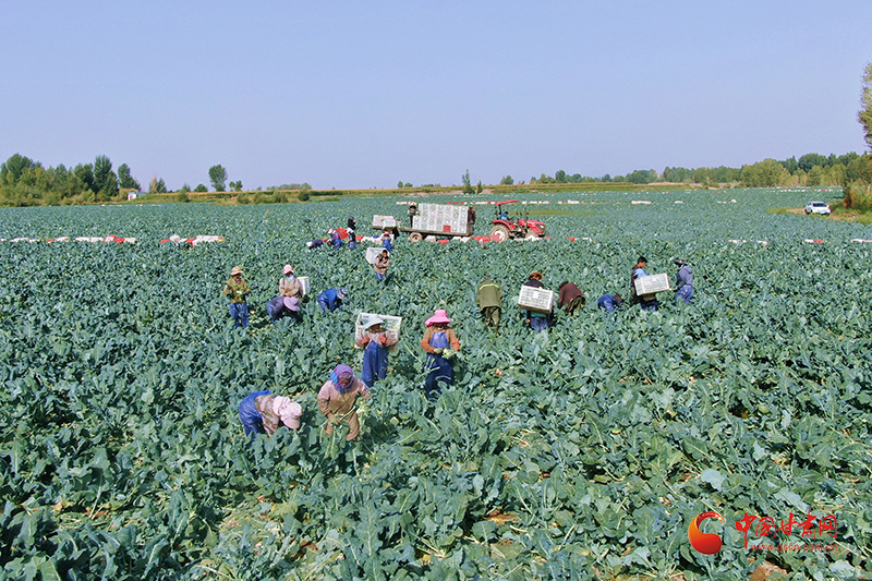 在蓼泉鎮(zhèn)絲路綠洲蔬菜分揀加工包裝配送生產(chǎn)線上,20余名工人正有序地對新鮮西藍(lán)花進(jìn)行去葉、清洗、裝箱、加冰等處理。這些經(jīng)過精加工的蔬菜即將發(fā)往南方沿海城市,成為千里之外消費(fèi)者餐桌上的美味。