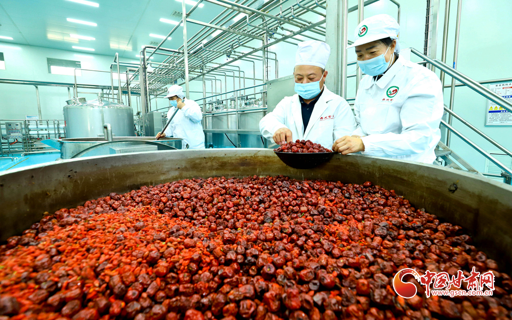 11月19日,張掖市臨澤縣一家食品企業(yè)的紅棗數(shù)字化車間里,全自動飲料生產(chǎn)線高效運轉(zhuǎn),每日可產(chǎn)出紅棗枸杞營養(yǎng)飲料、棗夾核桃、棗片等休閑食品十余噸,供應青海、新疆、內(nèi)蒙古、寧夏等地市場。