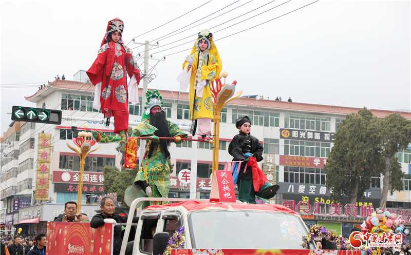 磐安、安遠(yuǎn)、禮辛三鎮(zhèn)聯(lián)合打造的高臺(tái)方陣同樣吸睛奪目,藝人將戲劇人物、神話傳說(shuō)以驚險(xiǎn)奇巧的造型凌空呈現(xiàn),端坐高架的孩童揮手致意,成為街頭極具視覺(jué)沖擊力的流動(dòng)風(fēng)景,彰顯著民間藝人的非凡智慧與膽識(shí)。“高臺(tái)是咱們甘谷的絕活,精巧又驚險(xiǎn),老祖宗傳下來(lái)的好東西,代代都好看!”現(xiàn)場(chǎng)老人的稱贊道出了大家對(duì)本土非遺的喜愛(ài)。