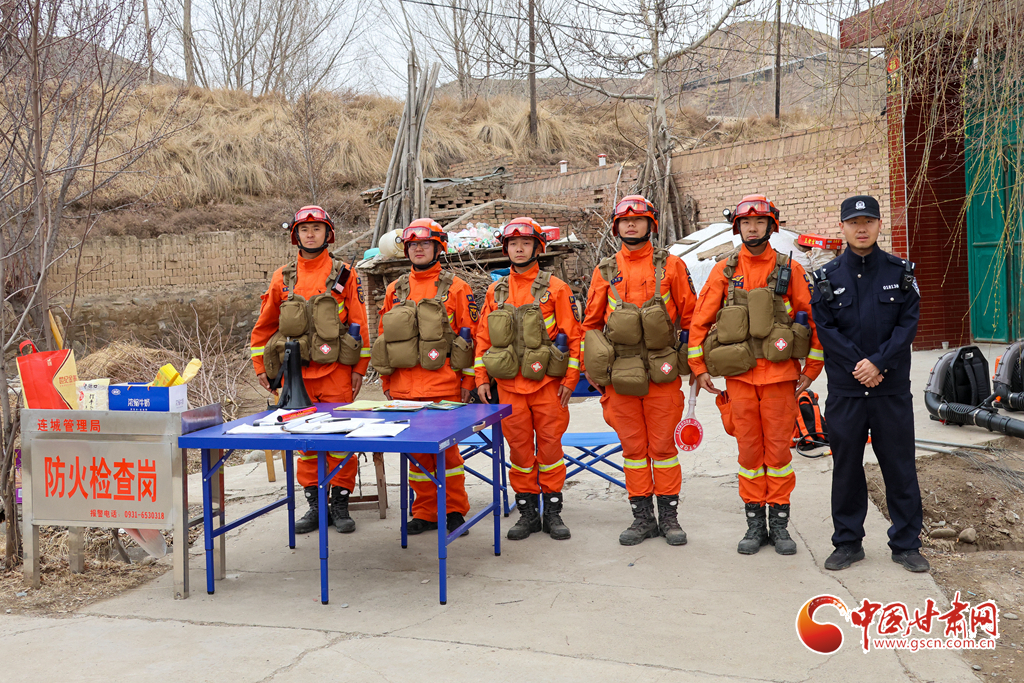 甘肅消防救援機(jī)動(dòng)總隊(duì)蘭州支隊(duì)消防救援人員聯(lián)合甘肅省連城國(guó)家級(jí)自然保護(hù)區(qū)管理局、連城鎮(zhèn)政府、蘭州市公安局森林分局連城派出所在明家莊村阿虎狼溝設(shè)卡檢查。