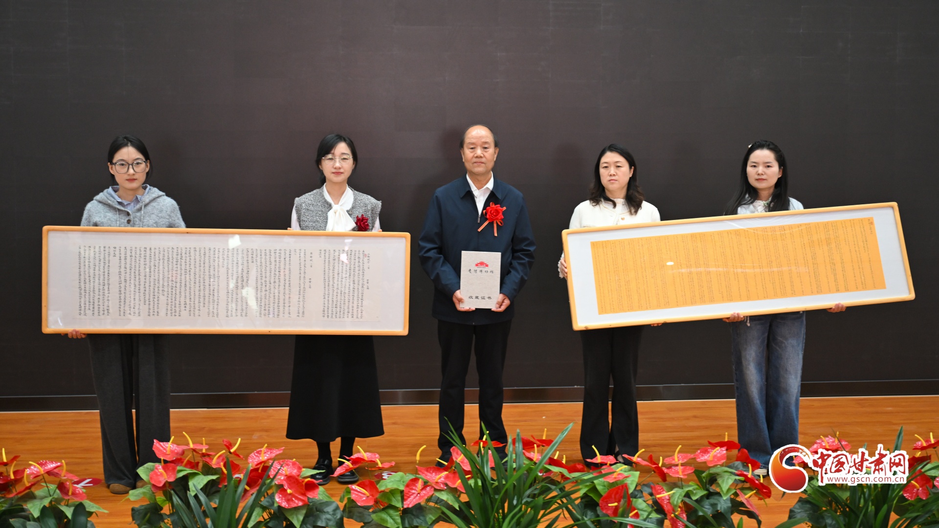 此次捐贈填補了慶陽籍當代書法名家在家鄉(xiāng)文化機構捐贈的空白,為當?shù)厝罕娞峁└咂焚|藝術滋養(yǎng),為文化賦能地方發(fā)展注入新動能。