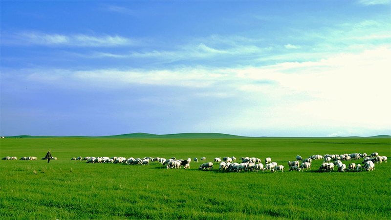 鐵絲圍欄的那一邊,幾頭牛正享受著午后的陽(yáng)光。它們有的在草地上漫步,有的臥在草地上打瞌睡。一只兔子從它們面前跑過(guò),它們沒(méi)有挪動(dòng)身體,只是看了兔子一眼,就接著專注于自己的世界了。牛尾巴耷拉在身后,偶爾慢悠悠地甩起來(lái),驅(qū)趕剛剛落在身上的飛蟲。藍(lán)藍(lán)的天上有幾朵碎云,它們也和貢格爾草原上的牛羊一樣慢慢地走著,并沒(méi)有什么事讓它們著急。