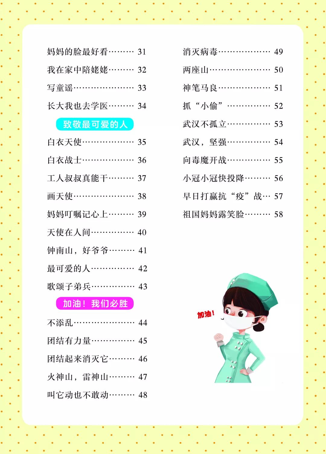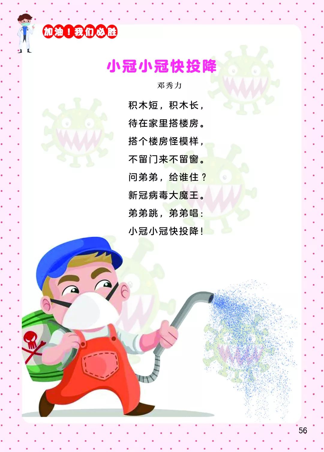 以下為《投降吧,新冠病毒——2020戰(zhàn)“疫”童謠60首》一書全部內容: