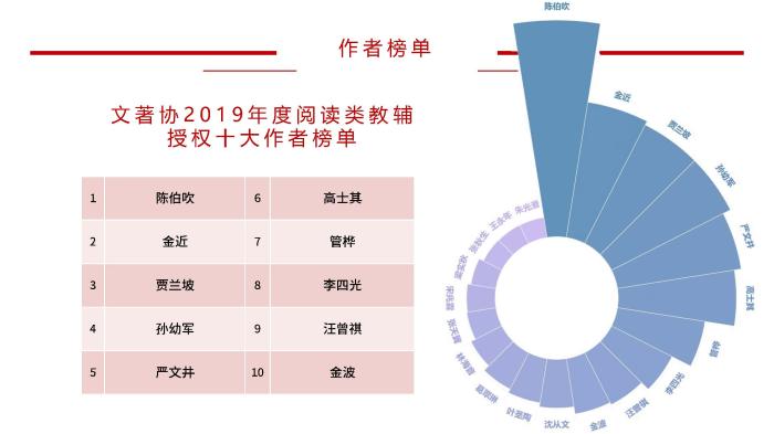 2019年度閱讀類(lèi)教輔授權(quán)十大作者榜單。文著協(xié)供圖