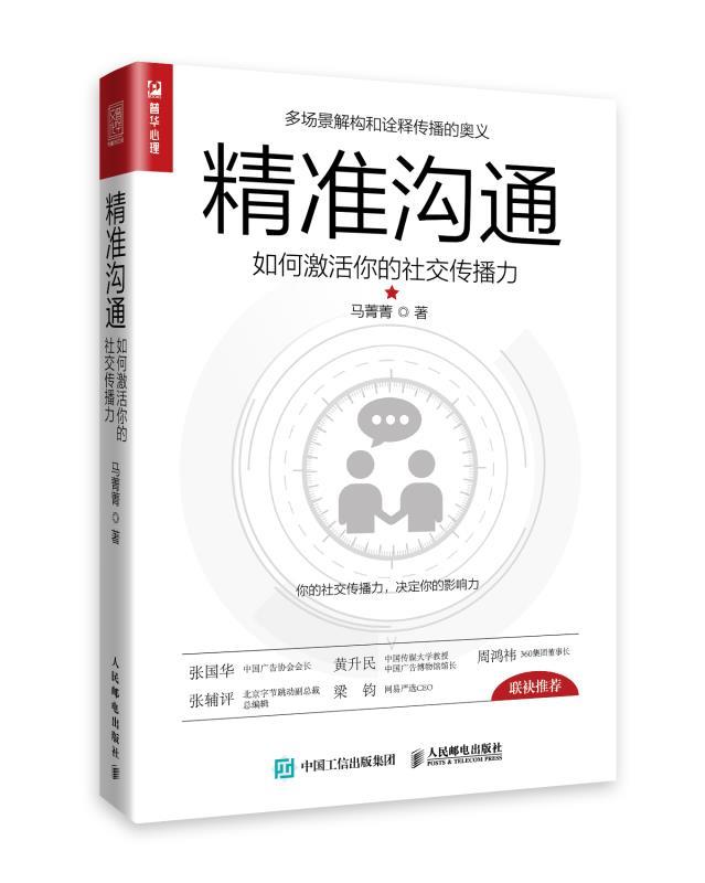 作為資深傳媒人和品牌傳播專家,在近日出版的《精準(zhǔn)溝通》一書中,馬菁菁以通俗易懂的方式向普通大眾介紹傳播學(xué)的一些經(jīng)典理論,嘗試以傳播學(xué)的視角分析和歸納日常人際交往與溝通中常見的問題,并運(yùn)用傳播學(xué)的理論和方法為讀者提供一種新的解決思路。