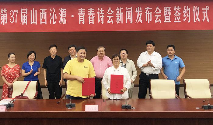 沁源縣委書記金所軍介紹沁源縣盛產油松、褐馬雞,村村有秧歌隊和籃球場,有山有水,美麗又美好。他將作為“全國森林旅游示范縣”的沁源縣詩意概括為“三晉大地的香格里拉”“近在咫尺的桃花源”。沁源縣委宣傳部部長黃貴河對沁源縣的文學創(chuàng)作情況及第37屆“青春詩會”活動承辦設想進行了介紹。發(fā)布會結束后,沁源縣政府副縣長李建萍與《詩刊》事業(yè)發(fā)展部副主任藍野簽定了合作協(xié)議。
