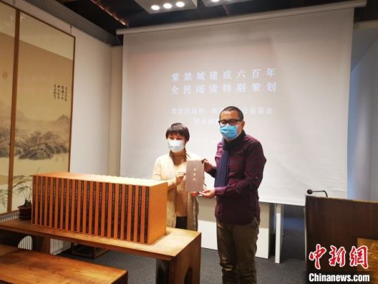 中新網(wǎng)北京12月28日電 (記者 應妮)“故宮出版社攜手新浪揚帆公益基金圖書捐贈發(fā)布會”28日在故宮博物院紫禁書院舉行。故宮出版社精選39種圖書共7800冊,由新浪揚帆公益基金定向捐贈給貴州、甘肅等省貧困山區(qū)的200所學校。這些圖書包括《故宮畫譜》系列、《故宮藏畫的故事》《千里江山圖的故事》《清明上河圖的故事》等,內容涉及600年的紫禁城歷史、人物、建筑及院藏珍品介紹等多方面。
