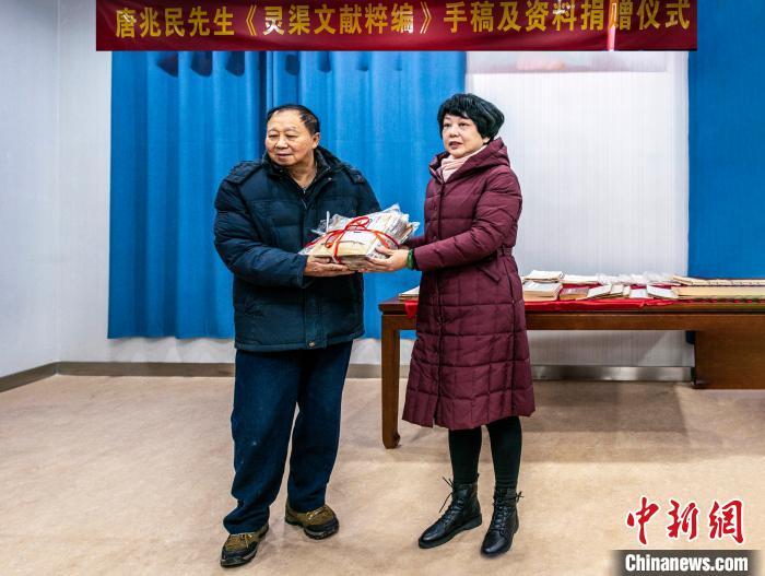 “卅載青燈知苦樂,一篇黃卷薈磯珠。”捐贈(zèng)現(xiàn)場,唐兆民兒子唐丁寧回憶其父親用四十年時(shí)間艱辛編撰《靈渠文獻(xiàn)粹編》出版后的感慨原話。
